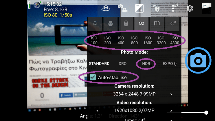 Επιπλέον, όταν αυξάνουμε το ISO, θα βοηθήσει περαιτέρω αν είναι ενεργός και ο σταθεροποιητής εικόνας (OIS-Auto stabilise).
