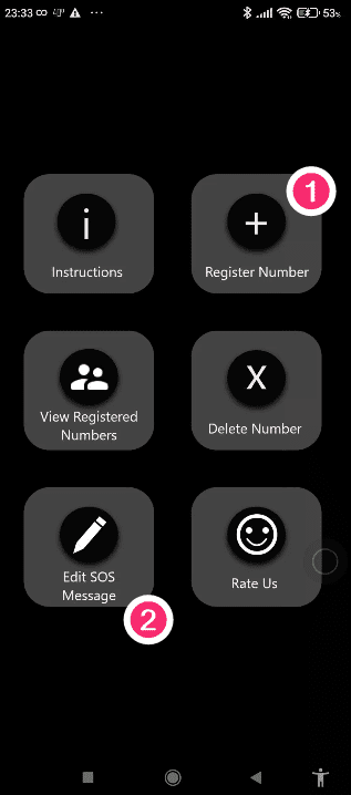 Μόλις τρέξουμε την εφαρμογή, αρχικά της δίνουμε τις απαραίτητες άδειες τοποθεσίας κ.λ.π. Κατόπιν, αφού ενημερώσουμε σχετικά τους δικούς μας, καταχωρούμε τους αριθμούς των κινητών τους (Register Number)…
